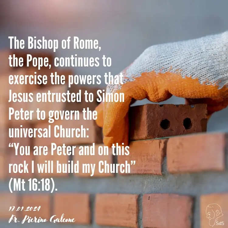 17.01.2024 The Bishop of Rome, the Pope, continues to exercise the powers that Jesus entrusted to Simon Peter to govern the universal Church: “You are Peter and on this rock I will build my Church” (Mt 16:18). Fr. Pierino Galeone▶▶clicca qui per vedere su Telegram