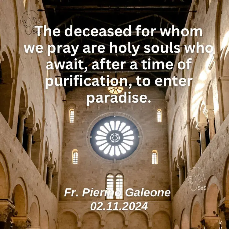 02.11.2024 The deceased for whom we pray are holy souls who await, after a time of purification, to enter paradise. Fr. Pierino Galeone▶▶clicca qui per vedere su Telegram
