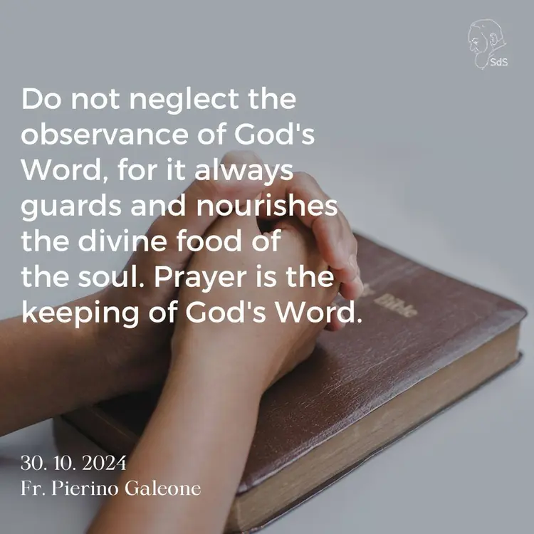 30.10.2024 Do not neglect the observance of God's Word, for it always guards and nourishes the divine food of the soul. Prayer is the keeping of God's Word. Fr. Pierino Galeone▶▶clicca qui per vedere su Telegram