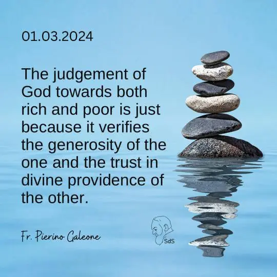 01.03.2024 The judgement of God towards both rich and poor is just because it verifies the generosity of the one and the trust in divine providence of the other. Fr. Pierino Galeone