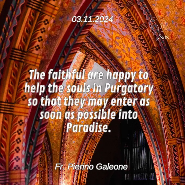 03.11.2024 The faithful are happy to help the souls in Purgatory so that they may enter as soon as possible into Paradise. Fr. Pierino Galeone▶▶clicca qui per vedere su Telegram