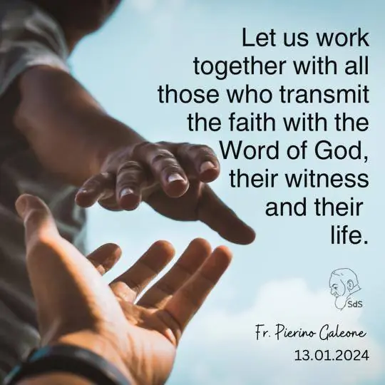 13.01.2024 Let us work together with all those who transmit the faith with the Word of God, their witness and their life. Fr. Pierino Galeone▶▶clicca qui per vedere su Telegram