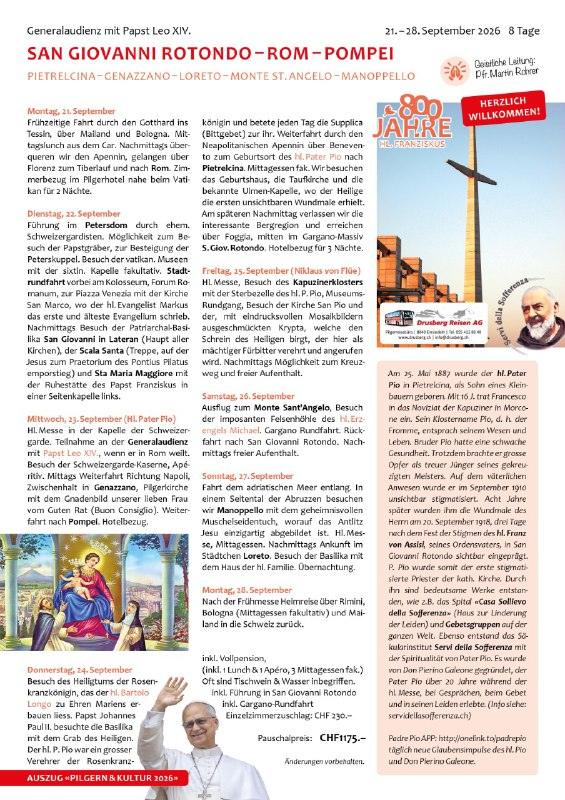Pilgerreise nach San Giov. Rotondo - Pietrelcina 21. - 28. Sept. mit Pfr. Martin Rohrer
