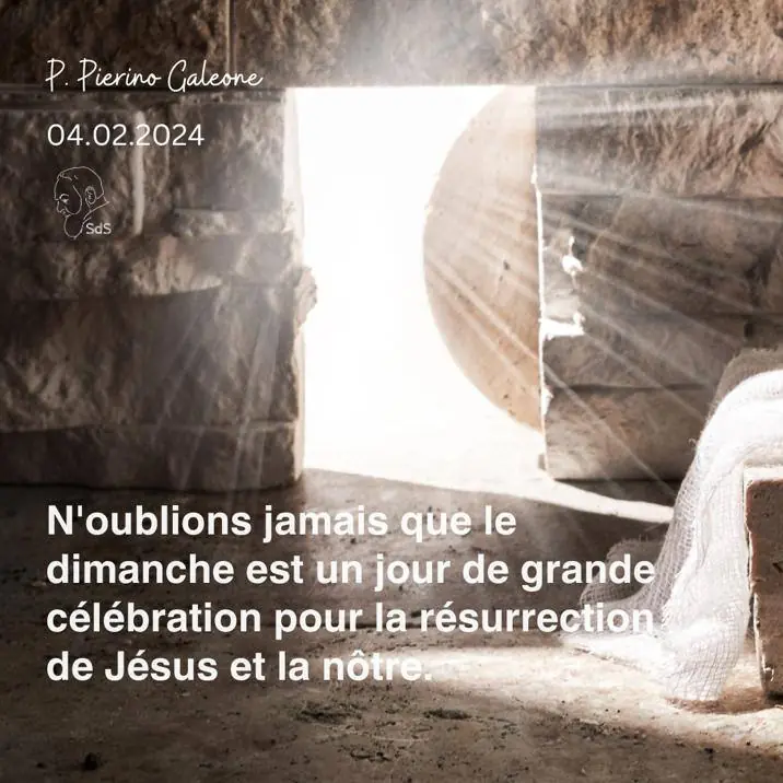 04.02.2024 N'oublions jamais que le dimanche est un jour de grande célébration pour la résurrection de Jésus et la nôtre. Père Pierino Galeone▶▶clicca qui per vedere su Telegram