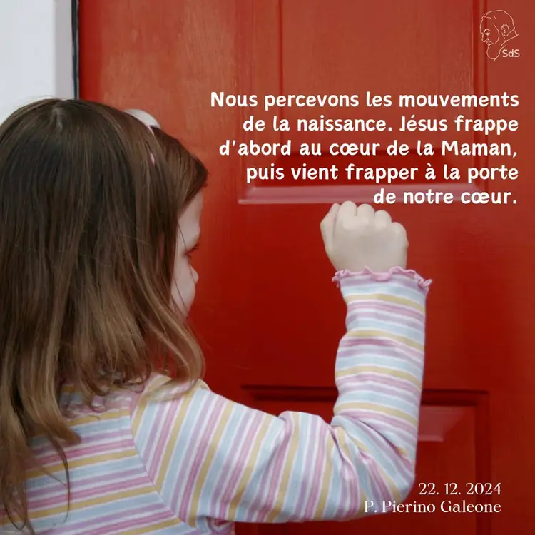 22.12.2024 Nous percevons les mouvements de la naissance. Jésus frappe d'abord au cœur de la Maman, puis vient frapper à la porte de notre cœur. Père Pierino Galeone